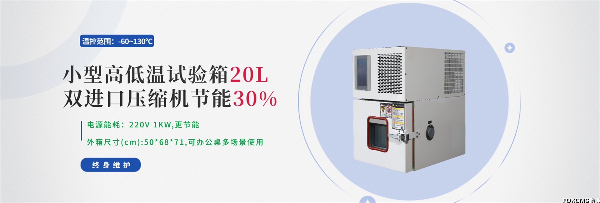 1. 明确测试需求:根据测试样品尺寸确定试验箱容积(如小型元器件选20L-48L机型,大型组件选120L及以上机型),结合温度范围(-40℃/-60℃)、温变速率需求,初步匹配功率区间;